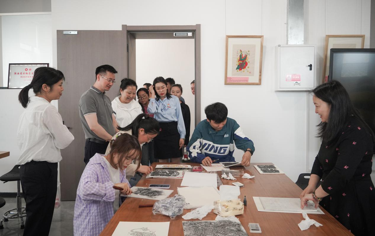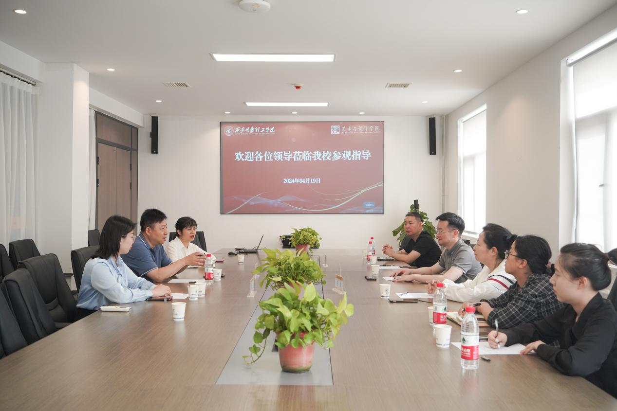 4月19日下午,莲湖区文化和旅游体育局局长王立、莲湖区青年路街道党工委书记胡强、办事处副主任杨冰等领导莅临艺术与设计学院调研交流。万裕文化产业有限公司总经理狄忠胜,艺术与设计学院办公室主任吴君、辅导员朱迪陪同参观交流。