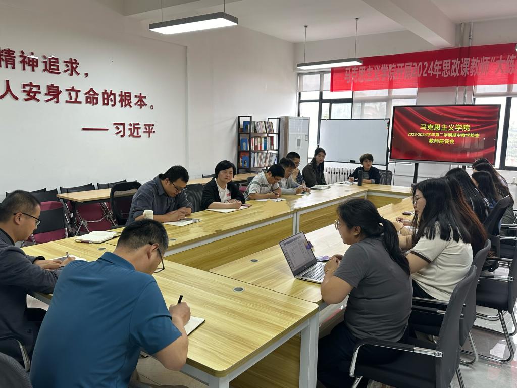 为深入了解教师在教学过程中的实际情况,加强教学质量监控,提升教育教学水平,马克思主义学院于5月9日在明志楼南306会议室召开了期中教学检查教师座谈会。此次座谈会旨在通过教师的交流和反馈,找出教学中的问题和不足,并提出改进意见和建议。学院党委书记王君涛、副院长惠斌及14位教师代表参会。