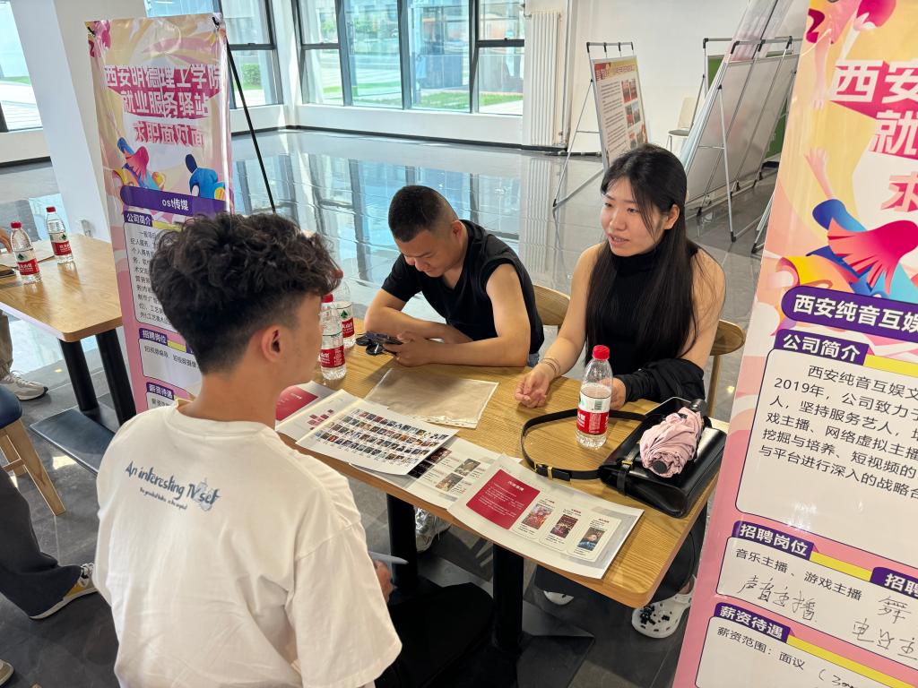 为深入贯彻落实国家“就业就是最大的民生”理念,助力我院学子就业工作,搭建企业与学院之间的桥梁,2024年5月8日下午,艺术与设计学院于唐韵堂举办专场招聘会,此次前来招聘的共有13家企业,其中包括平面设计、文创设计、音乐主播、游戏主播、销售主管、风险管理咨询师以及各职能类型在内的10余个工种。我院艺术类专业大三、大四学生参加了此次招聘会,学校招生就业指导老师侯磊、艺术与设计学院党委书记兼行政副院长雷宇以及大三、大四毕业班辅导员到招聘会现场与企业代表进行沟通交流,指导和帮助学生实现高质量就业。