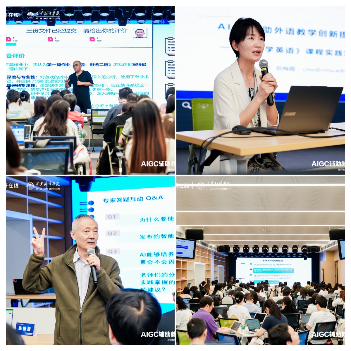 在为期两天的研修中,上海师范大学黎加厚教授围绕“AIGC驱动教学创新”这一主题,深入讲解了提示词设计和生成式探究学习设计的实操方法。他通过设计学科教学专属提示词模型,指导教师智能生成教案、课件PPT、作业测试等教学资源,并介绍了智能设计学科思维导图和智能口语学伴等创新工具,为学员们提供了以真实教学需求为导向的教学优化策略。北方民族大学陈梅霞教授结合具体的学科教学场景,以“AIGC赋能个性化教学设计——以大学英语阅读和写作课组织实施为例”为主题进行了案例分享交流,展示了AIGC在个性化教学设计中的强大潜力。北京大学陈江教授以“AIGC 辅助教学创新提效——教学资源智能生成及互动教学模式创新”为题着重讲授了AIGC生产力工具包与工具实操,以及ChatBot智能体在教学中的应用,为学员们提供了增强课堂互动效果的新思路。