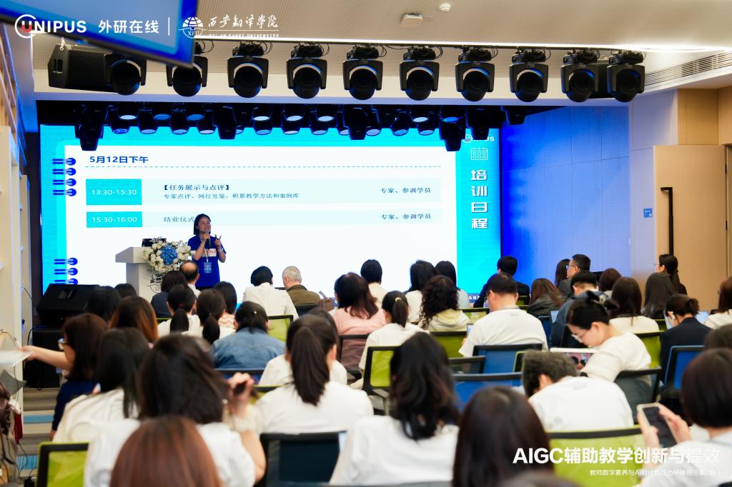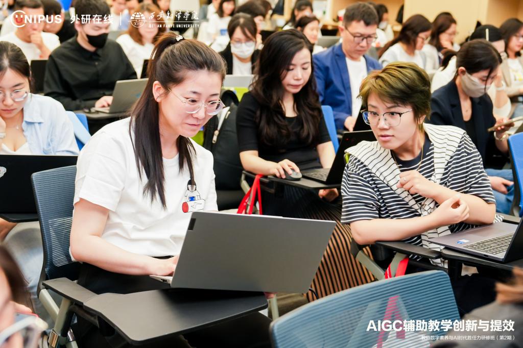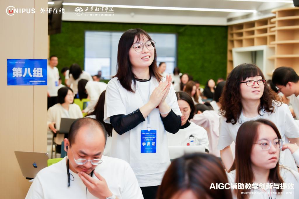 研修班采用理论与实践相结合的教学模式,将学员分为12组,通过2天的线下工作坊理念交流、工具实操、案例分享和任务产出等形式,使教师能够一站式掌握AIGC工具,并完成相关教学设计的实操任务。这种互动式的学习模式不仅让学员们深入了解了AIGC在教学中的应用,还通过专家点评和同行互鉴,提升了教师的教学创新力和生产力。
