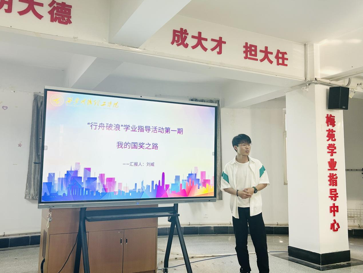 为持续助推高等职业技术学院学风建设向好发展,促进学生个人成长与学业进步,推动“一站式”学生社区建设,行舟辅导员工作室于5月13日在梅苑学业指导中心开展第一期“行舟破浪”学业指导活动,本期邀请高等职业技术学院2021级学生刘威担任主讲人,以“我的国奖之路”为切入点,将学业指导搬进学生社区,本次活动由行舟辅导员工作室赵英洁老师主持。