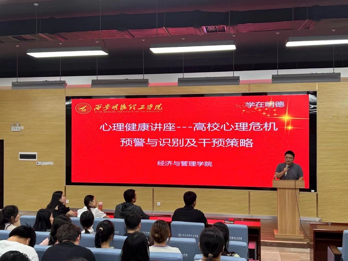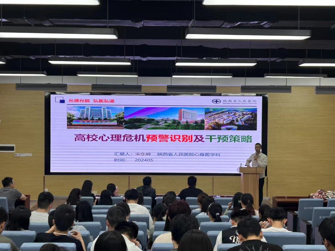 为进一步落实《陕西省教育厅办公室关于开展我省首个全国学生心理健康宣传教育月活动的通知》文件精神,推进“阳光护航”心理育人宣传季实践活动深入开展,推动学生心理健康教育工作提质增效,促进学生身心健康发展。5月14日,经济与管理学院邀请陕西省人民医院心身医学科主治医师宋东峰在建德楼201报告厅举办题为《高校心理危机预警识别及干预策略》的讲座。学院党委副书记冯纪潮、大一至大三年级辅导员、学生代表参加了学习。讲座由学院心理专干张爽主持。