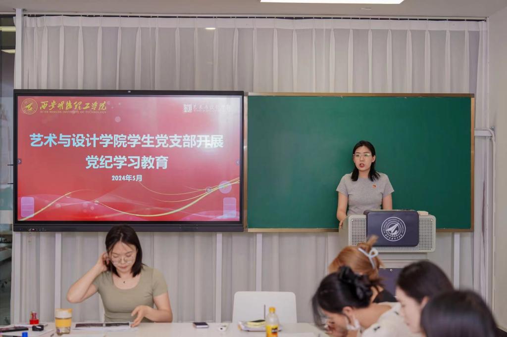 为深入学习领会习近平总书记关于党纪学习教育的重要讲话和重要指示精神,全面贯彻落实党纪学习教育,进一步增强党员的纪律观念和规矩意识,筑牢廉洁自律的思想防线,确保党纪学习教育走深走实、取得实效,增强“一站式”学生社区建设,艺术与设计学院学生第二、第三党支部于2024年5月28日在汉源楼302党建活动室开展党纪学习教育专题党课,党课由学生第二、第三党支部书记党红娟和朱迪分别讲授,支部全体党员参加此次党课。
