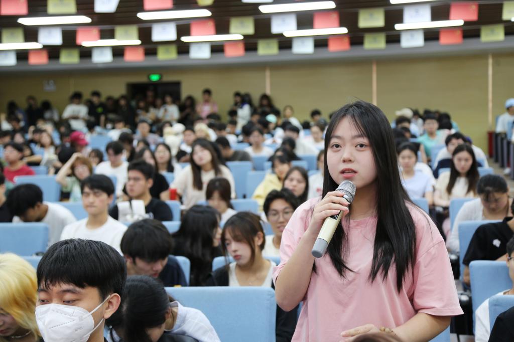 在互动环节,求知若渴的同学们纷纷举手提问,针对同学们的提问,杨教授结合自身求学与从教经历作了生动的解答。讲座在热烈的掌声中落下帷幕,王爱霞馆长代表全场师生对杨教授的精彩讲解表示由衷的感谢,并倡议同学们要积极实践杨教授提到的阅读方法,从阅读经典中去寻找自己的理想国,不要抱怨读书苦,那是去看世界的路。