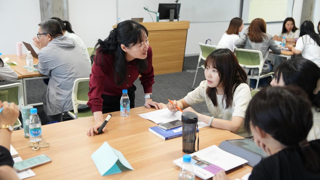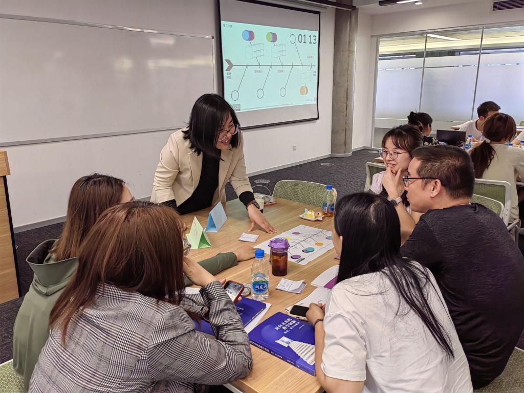 西浦未来教育学院数字化教育专业主任李娜副教授就《如何在数字化教学新场景中设计研究导向型课程?》以工作坊形式开展教学,通过案例研讨、情景演练和互动,分享和交流“鱼骨课程设计法”是如何在实践中支持以“学习者为中心”的教学模式。老师们积极思考,互动积极,课堂氛围热烈。