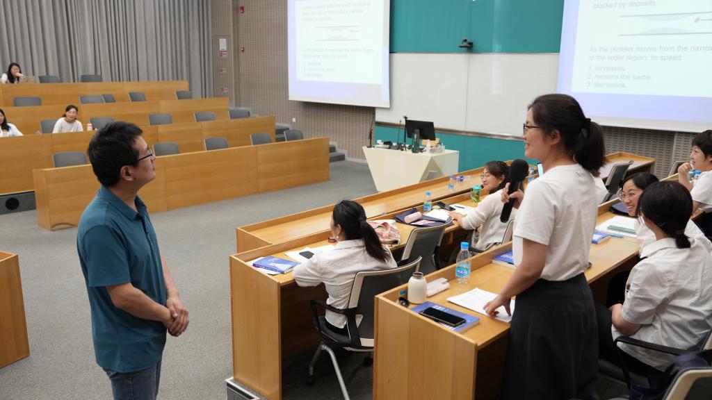 在随后的案例探讨中,西浦理学院物理系于昊副教授分享了如何在教学设计中重构学习目标,帮助学生关注真实问题。他通过实际教学案例,展示了如何在教学过程中创造性地引入真实问题,激发学生的学习兴趣和积极性,来培养学生解决问题的能力,精典案例让在座的老师大开眼界,赞叹不已。