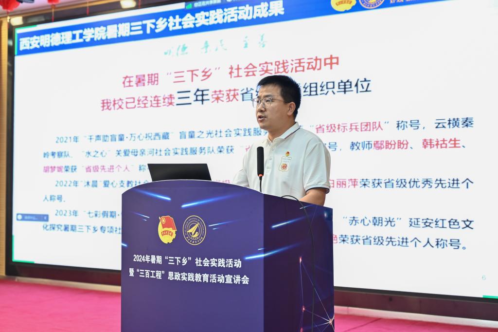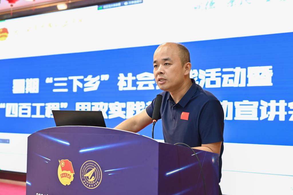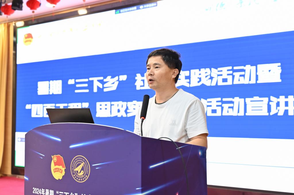 校团委副书记刘雄详细解读了《关于开展2024年暑期“三下乡”社会实践活动暨“四百工程”思政实践教育活动的通知》。他从实践原则、实践选题、立项流程、申报要求等多个方面进行了全面而细致的讲解,并介绍了报名流程和咨询方式,为即将参与活动的同学们提供了宝贵的指导和帮助。