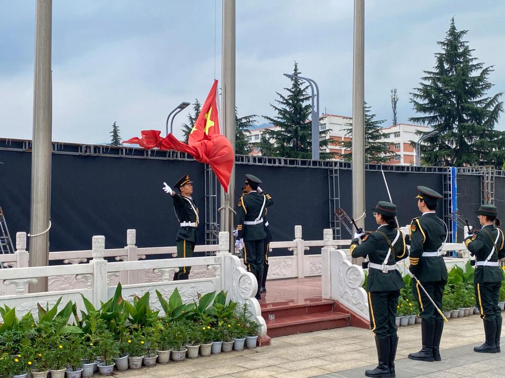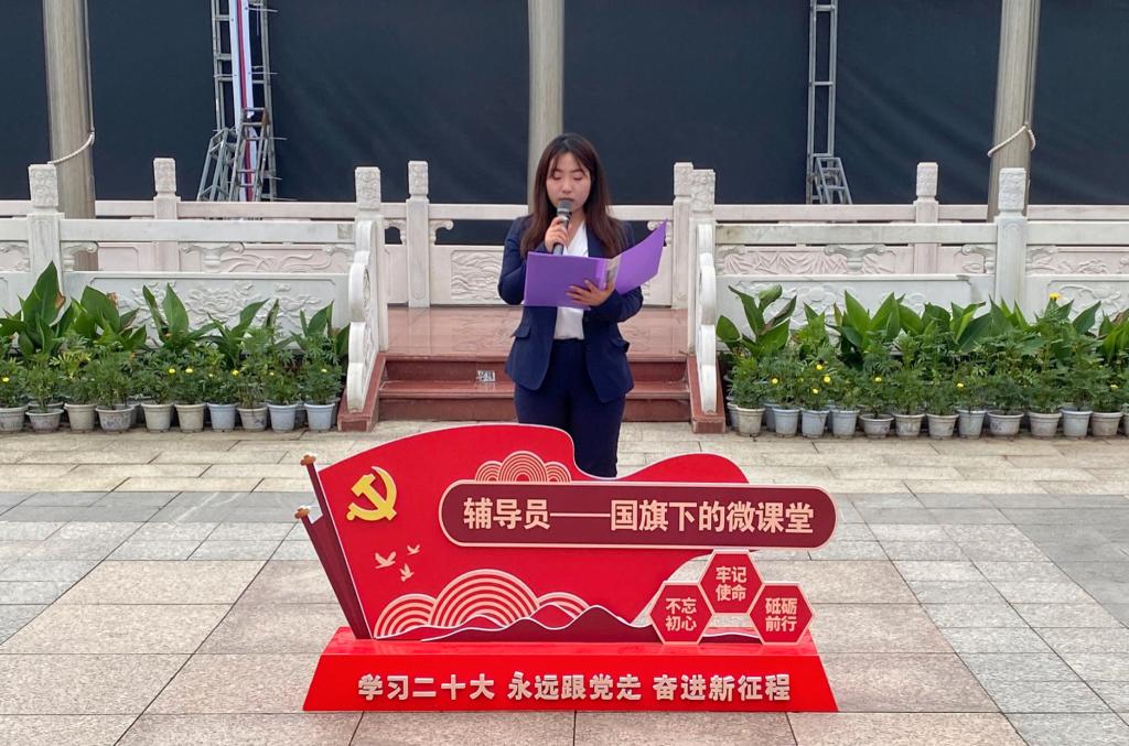 6月17日,“辅导员说成长”——第四十四期辅导员讲微课“学以载道,诚以养德,信以立身”国旗下的微课堂爱国主义教育系列活动在学校中心广场举行,党委学生工作部老师、艺术与设计学院和国际教育学院师生代表参加活动。