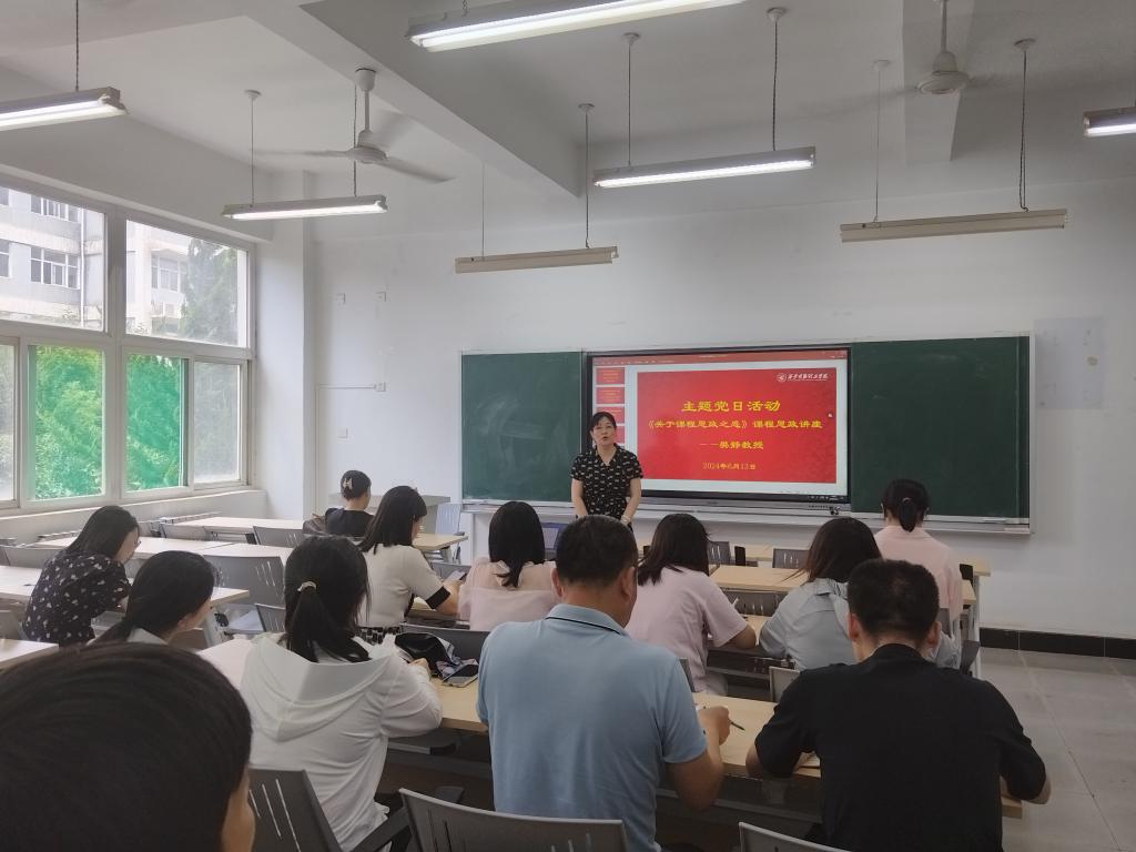 在党课讲授中,樊老师围绕课程思政的核心理念,详细分析了专业课教师对课程思政认识的误区,阐述了课程思政提出的背景及其着力解决的问题,强调了全面领会《高等学校课程思政建设指导纲要》精神的重要性,并结合新工科计算机专业方向,探讨了工学类专业课程思政元素的挖掘。她通过生动的案例,展示了如何在专业课程中巧妙融入思政元素,同时分享了其他高校在课程思政方面的优秀做法和成功经验。讲座内容丰富、深入浅出,使教师党员们对课程思政有了更加全面和深入的认识。