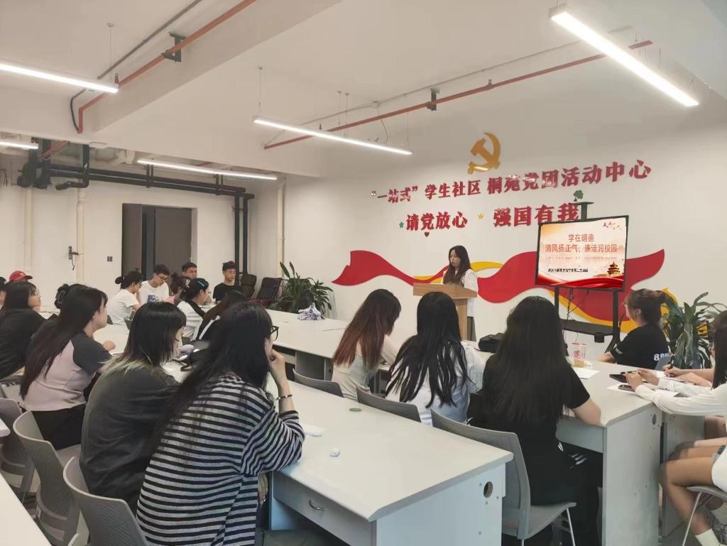 为深入推进党纪学习教育,营造清正廉洁、风清气正的育人文化和政治生态,6月19日,经济与管理学院学生第二党支部在桐苑“一站式”学生社区开展“清风扬正气,廉洁润校园”主题党日暨美育实践活动,支部党员、入党积极分子代表参加了活动,活动由支部党员靳卓颖主持。