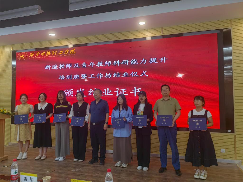 结业式中,西安电子科技大学刘三阳教授为新进教师及青年教师代表颁发了结业证书。科技处副处长雷娟做总结讲话。她代表科技处鼓励广大教师,在学校多项科研鼓励政策出台的基础上,教师们要不忘初心,练就过硬本领;要强化科研意识、成果意识,做好教学与科研的平衡关系,科教融合,教研相长,充分发挥它们各自的优势,共同推动高校的发展和社会的进步。