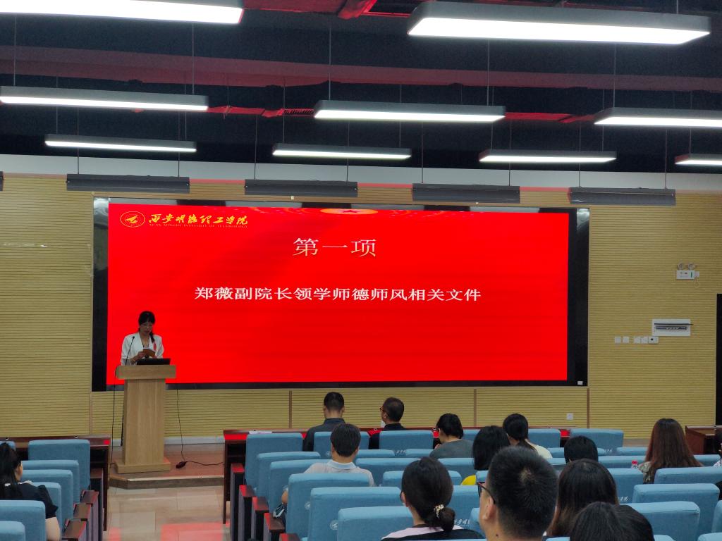 学院党委书记王君涛作了题为“牢记初心使命 潜心教书育人”的主题报告。他从准确把握师德师风的科学内涵、深刻理解师德师风的重要意义、师德师风建设中出现的问题以及身体力行践行师德师风标准四个方面,对学院教师师德师风建设提出具体要求,并强调作为高校教师应做到坚定理想信念、陶冶道德情操、涵养扎实学识、勤修仁爱之心,努力成长为“经师”“人师”相统一的大先生。希望全体教师在在认真完成试卷评阅的基础上,按照课程组进行集体备课、磨课,将教学工作做到精益求精。