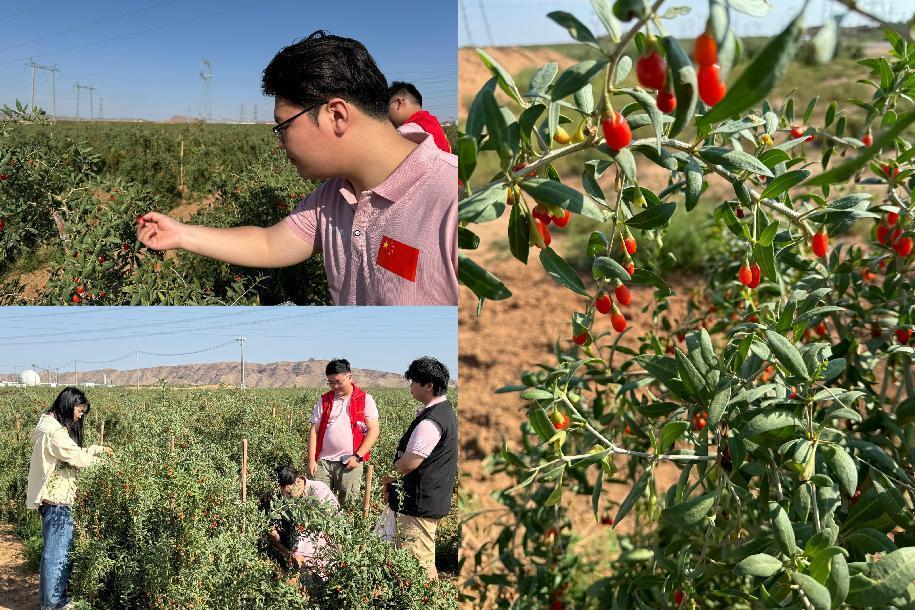 当天上午,实践调研队在早康枸杞股份有限公司负责人的带领下,首先参观了公司的枸杞种植基地。远离城市喧嚣的30公里处,这里空气清新,土壤肥沃,清水河与黄河的交汇为枸杞生长提供了得天独厚的条件。学生们亲眼见证了中宁枸杞从种植到收获的整个过程,深刻体会到了“天下黄河富宁夏,中宁枸杞甲天下”的美誉背后的辛勤付出和自然条件的重要性。