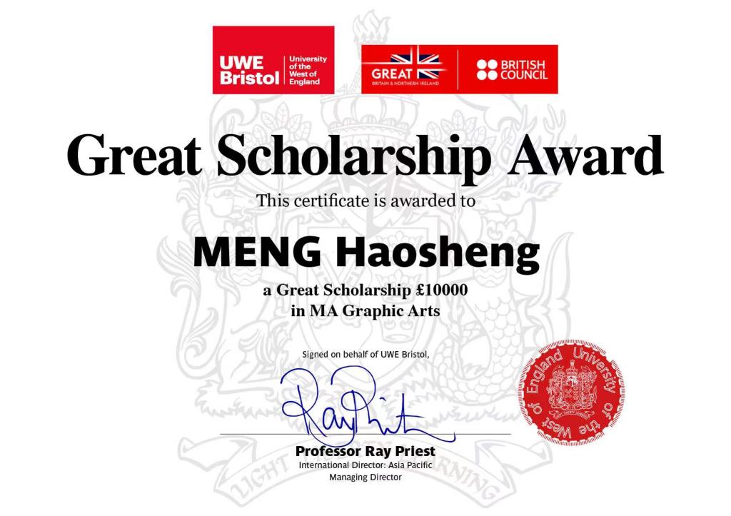 “非凡奖学金”是西英格兰大学为中国大陆公民在西英攻读全日制授课型研究生所设立的。除优秀的成绩和综合素养外,获奖者要担任西英格兰大学学生大使职务,可与英国文化教育协会保持联系,成为非凡英国奖学金项目的代言人;通过个人和学术成就与英国学校建立学术联系,参加奖学金获得者的社交活动,分享在英国的学习感受。