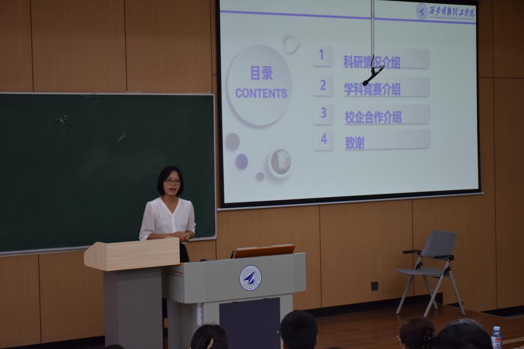 副院长李郁分别就学院在学科竞赛的优异成绩、与知名企业的深度合作、以及科研创新等方面做以介绍。她强调,学院致力于为学生提供全面发展的平台,助力他们成为具备创新精神和实践能力的高素质应用型人才。
