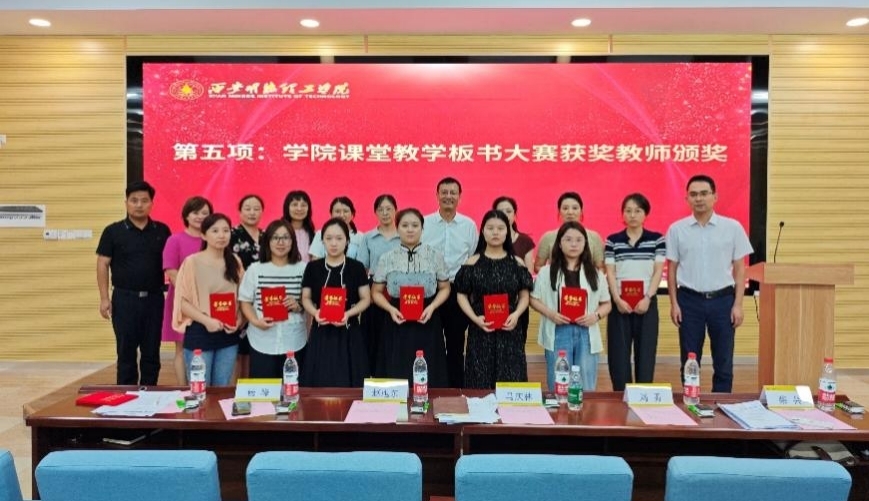 学院领导班子为第一届课堂教学板书大赛获奖教师进行颁奖。