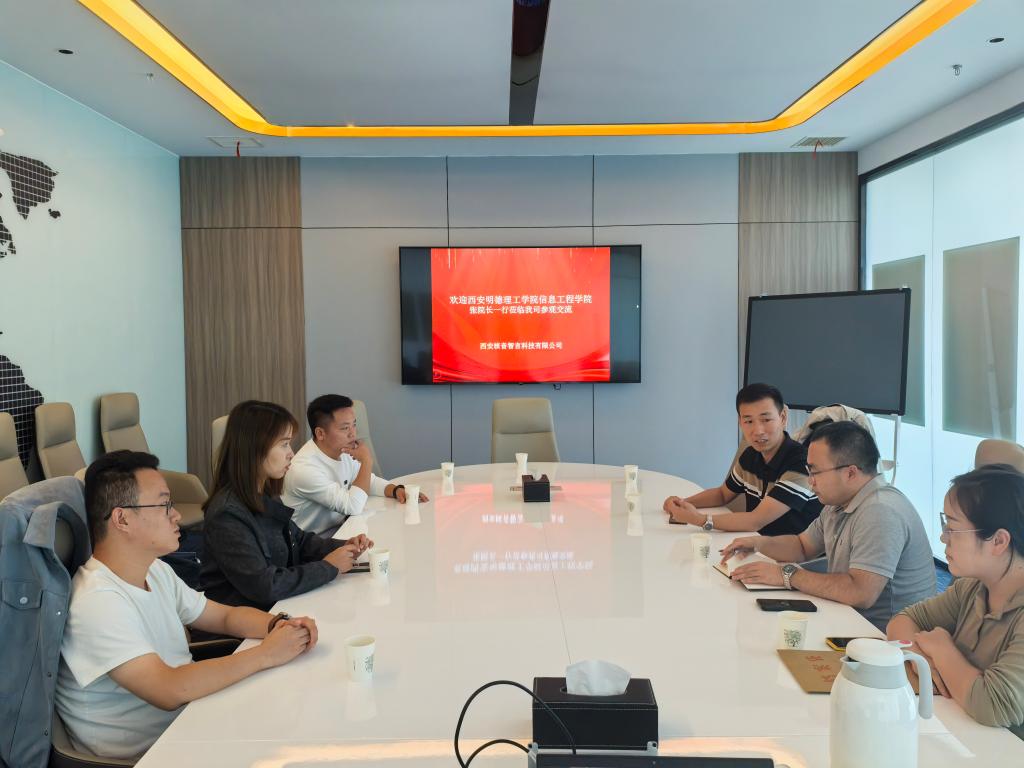 西安核音智言科技有限公司对外合作部项目经理宋永林、市场经理卢佳梅带领学院一行首先参观了公司的研发部门和办公环境,随后,双方在会议室进行了深入的座谈交流。双方就如何更有效地开展实习实训项目、如何确保学生的毕业设计与企业实际需求紧密结合、如何共同组织并提升学科竞赛的参与度和影响力,以及如何通过教师培养提升学院的教学质量和科研水平等议题进行了富有成效的讨论。