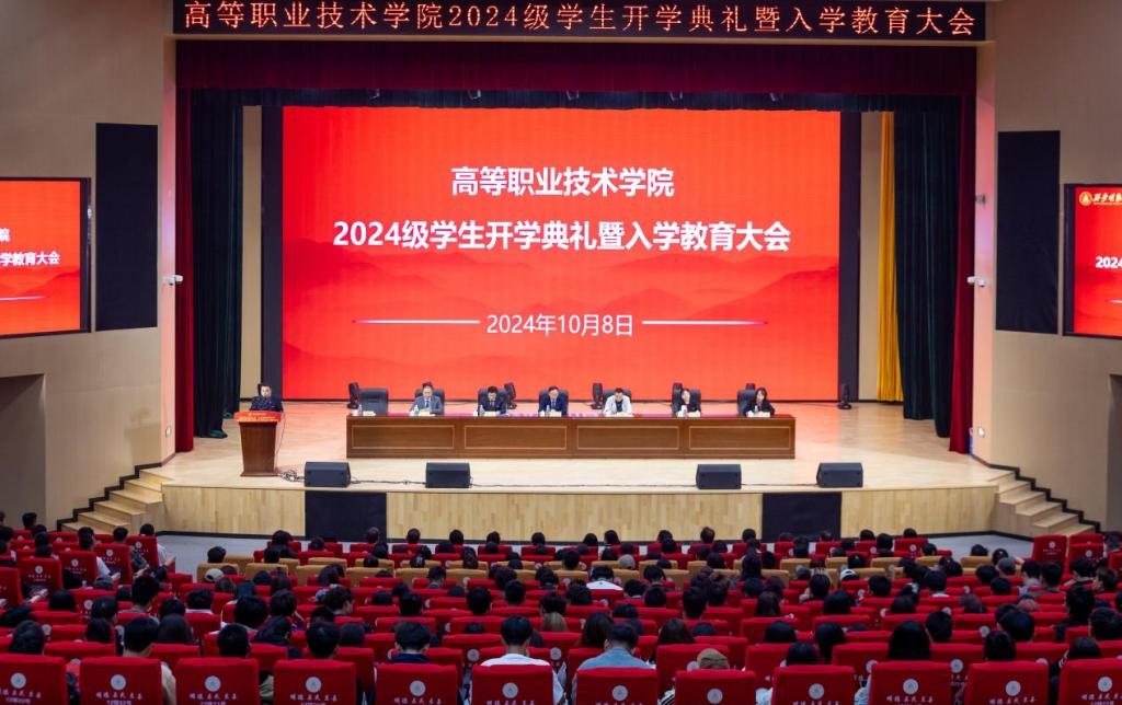 金秋时节,硕果飘香。为引导2024级学生尽快了解大学生活、适应新环境、转变新角色,高等职业技术学院于10月8日在四季廊桥报告厅隆重举行了2024级学生开学典礼暨入学教育大会。学校党委副书记、纪委书记、副校长白秦川,财务总监马晓军,高等职业技术学院领导班子、各专业负责人及教师团队、全体辅导员、教学管理人员以及2024级新生共同参加了会议。会议由学院党总支书记王庭良主持。