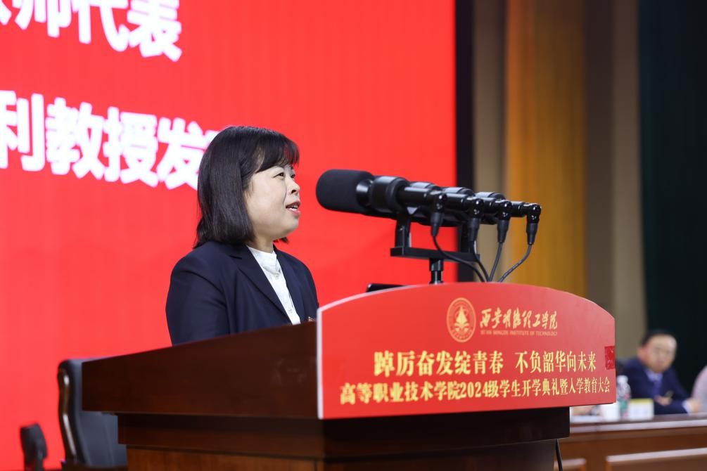 2024级新生代表李嘉琪同学发言。要在大学阶段做好大学生应该做的事,时刻牢记“明德、亲民、至善”的校训,发奋学习,遵守校纪,积极参与校园活动和各类技能竞赛,挖掘自身的无限潜力;并从守信念,志存高远,练本领,精益求精,塑格局,砥砺奋进三个方面鼓励同学们以饱满的热情投入到即将开始的学习和生活中,以实际行动实现理想、报效祖国,为社会作出贡献。