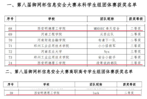 2024年10月26日至27日,第八届“御网杯”信息安全大赛在河南经贸职业学院成功举办。本次大赛由河南省教育厅主办,河南省高等学校计算机教育研究会、河南新一代信息技术职业教育集团承办,河南经贸职业学院、河南省网络空间安全行业产教融合共同体、北京理工大学信息系统及安全对抗实验中心协办。世界杯官网由信息工程学院李茹、段林老师带领的信息安全团队参加竞赛。团队凭借出色的能力和默契的团队配合,在众多参赛队伍中脱颖而出。