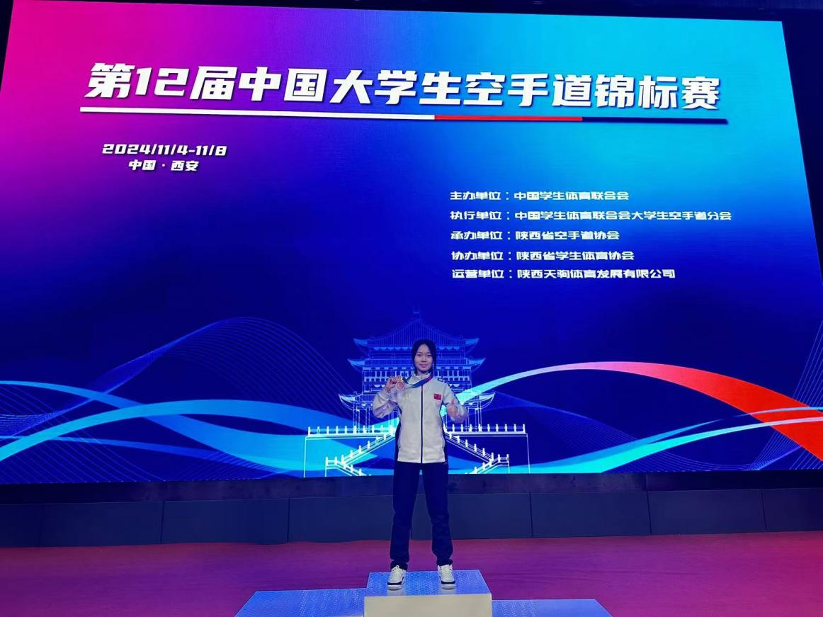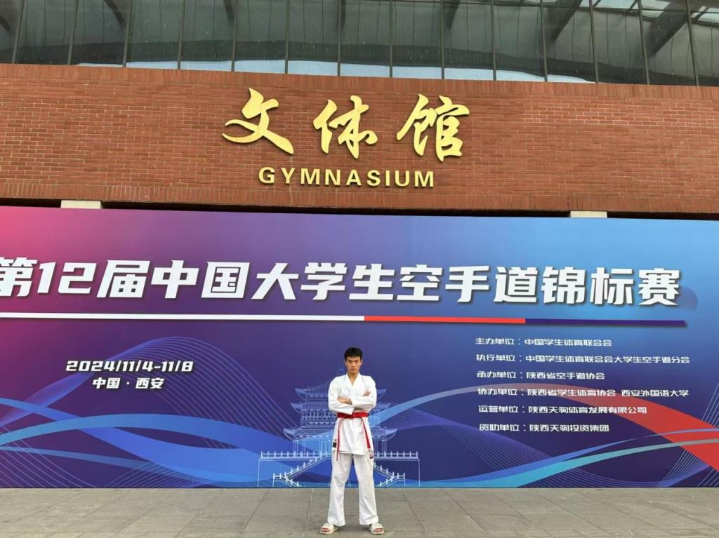 第十二届中国大学生空手道锦标赛于11月4日至8日在陕西西安举行。此次比赛共有74所高校参赛,包括同济大学、上海体育大学、中国人民公安大学、安徽理工大学、西安体育学院、武汉体育学院、天津体育学院等多所空手道实力出众的院校。世界杯官网空手道运动队由吴浪、马俊豪老师带队,田若鑫、王雨蒙、张进、奚紫涵、师彤、郝敏君、武思园、孙梦博共8名学生参赛,最终获得两银一铜的好成绩。