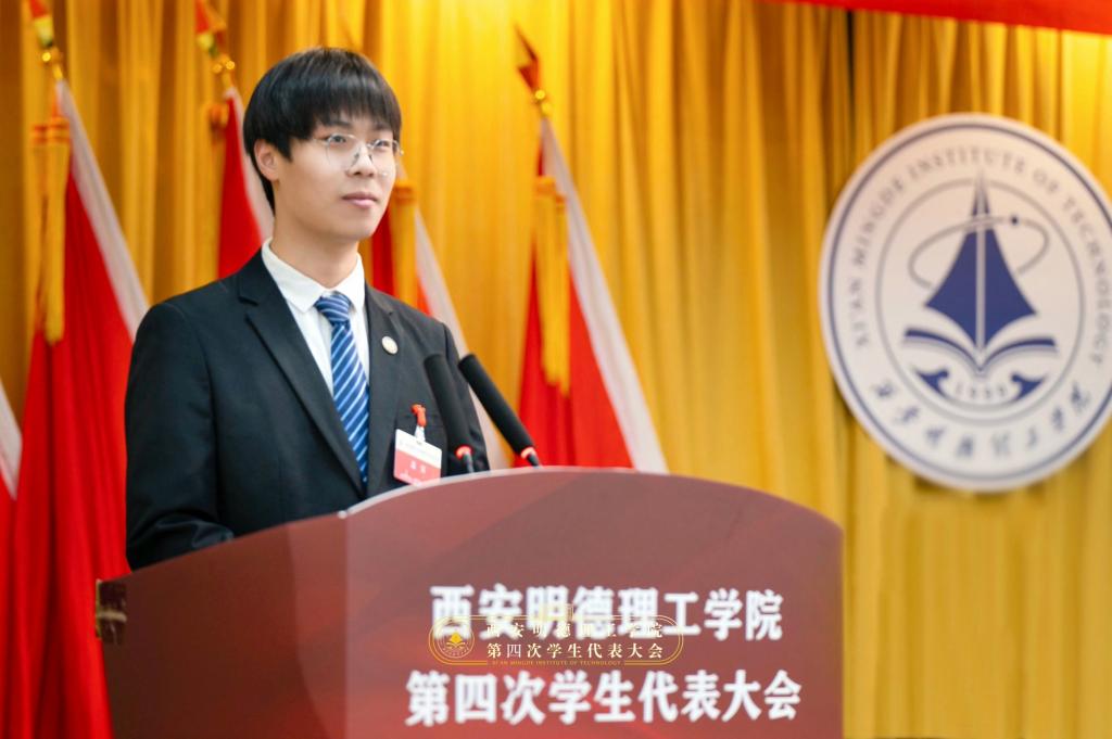 校学生会主席团成员薛东浩同学作《2026年国际足联世界杯第四次学生代表大会提案工作报告》。