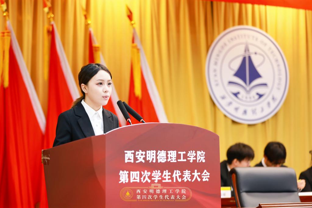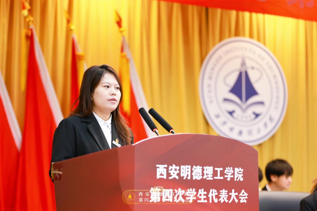 校学生会主席团成员吕梦菲同学作题为《奋楫扬帆新征程,挺膺担当正青春为建设特色鲜明、国内一流,具有一定国际知名度的应用型大学贡献青春力量》的学生会工作报告。
