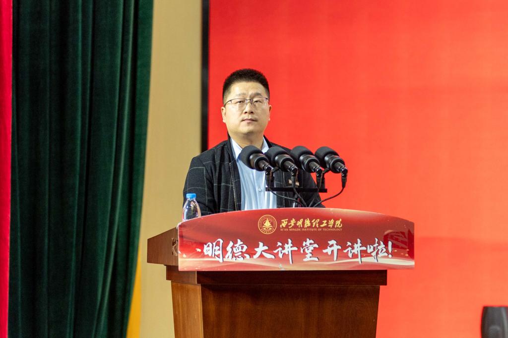 2024年11月15日晚,第五十八期“明德大讲堂”在四季廊桥报告厅隆重举行。此次讲座特邀西安建筑科技大学马克思主义学院副书记、副院长李焱教授作题为《礼乐文化与大学之道》的主题报告。讲座由党委组织宣传部部长高超主持。
