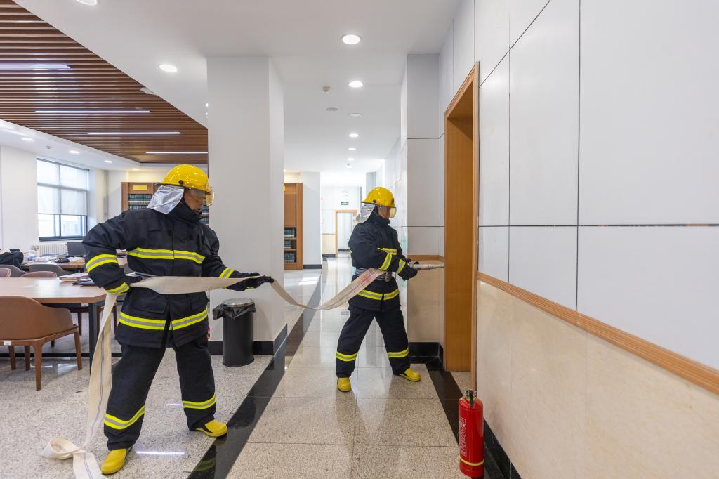 2024年11月21日下午,学校在图书馆以“三楼大厅突发用电线路起火”为背景,进行2024年消防应急综合演练,明德源教育集团副总裁林东、总裁助理刘澜涛莅临现场观摩指导,学校陈鹏副校长担任现场总指挥。