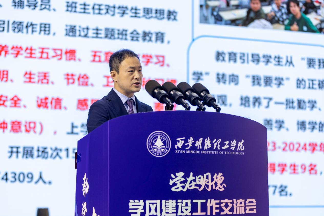 会上,党委学生工作部对“学在明德”学风建设工作开展情况进行了总结。信息工程学院、经济与管理学院分别围绕会议主题,从育人理念与工作思路、主要做法与特色成效、存在问题与改进措施等方面进行了学风建设经验交流发言。各学院学生代表结合个人实际,分享了自身在学风建设中的收获和成长。