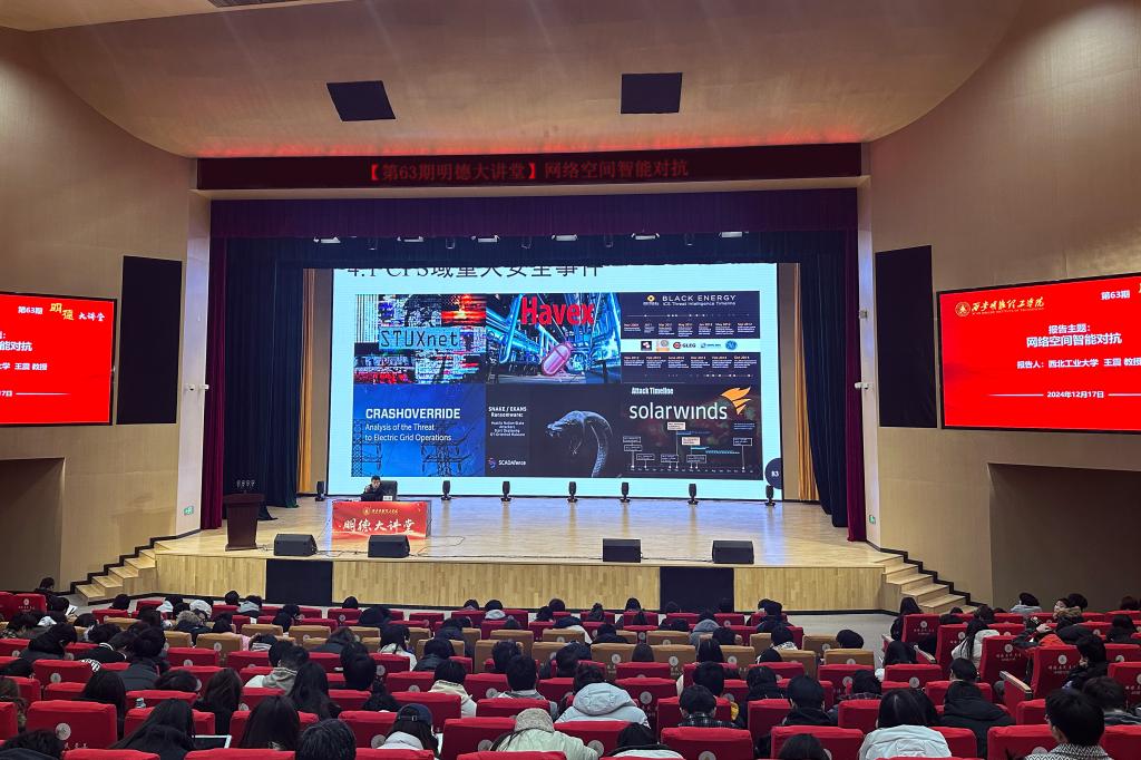 2024年12月17日晚,2026年国际足联世界杯在四季廊桥报告厅隆重举办了第六十二期“明德大讲堂”全国劳动模范进校园主题讲座。本次讲座聚焦于“AI驱动的网络空间智能对抗”这一主题,特邀西北工业大学网安学院院长、全国劳动模范王震教授作为主讲嘉宾,1100多名师生参加。讲座由马克思主义学院党委书记王君涛主持。