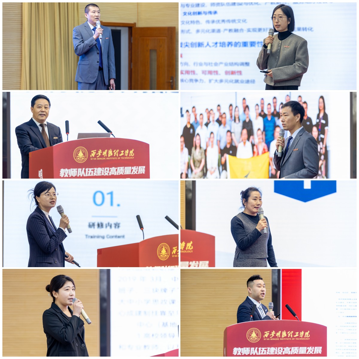 在教师交流分享环节,来自各学院的14位教师作为部分培训班的优秀代表,依次上台进行了精彩的汇报,分享了他们外出培训的珍贵收获、深刻感悟及培训成果转化情况。内容从国内外顶尖学府先进教育理念到应用型人才培养体系的构建,从知名院校的实践操作到课程思政的深耕细作,从教学组织与方法的创新到信息化教学管理平台的应用,从智能制造领域的前沿探索到艺术人才培养模式的创新实践,从辅导员思想政治教育工作的提升到“双师双能型”教师技能的锤炼,全方位、多角度地展现了教师们在培训中的所学、所思、所悟,犹如一场知识的盛宴,为在场听众带来了深刻的启发和思考,台下的教师们沉浸其中,深感收获颇丰。
