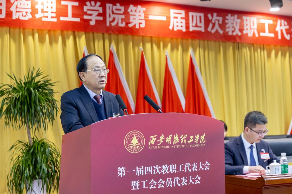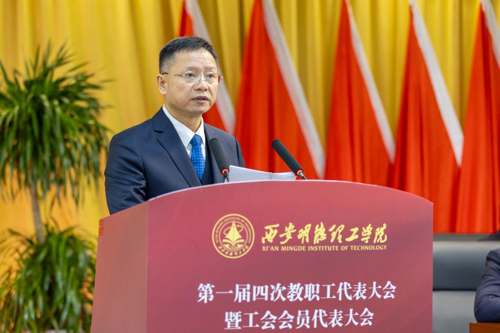 学校党委书记马川鑫在总结讲话中指出,2025年是全面贯彻落实党的二十大、二十届三中全会精神和全国、全省教育大会精神的重要之年,是“十四五”规划的收官之年,更是学校教学评建攻坚和评估全面达标的冲刺之年。一年来,校院两级工会组织、教代会组织履职尽责、担当作为,在强化政治引领、加强制度建设、发挥组织作用、落实责任担当、加强民主管理、保障职工权益、繁荣校园文化等方面做出了积极贡献,凸显了工作的政治性、先进性、群众性特点,为推动学校各项事业的发展发挥了积极作用。他还就进一步落实好会议精神提出了四点要求,一是坚持党的全面领导,确保正确政治方向,不断强化全校教职工命运共同体意识、价值共同体意识;二是聚焦教学评建,推动学校高质量转型发展,严格执行评建工作标准和要求,千方百计协同相关部门和各学院保质保量完成各项教学工作,为高质量通过本科教学工作合格评估做出贡献;三是要加强自身建设,提升服务质量,不断健全工作体制机制,真正成为职工利益的代表者和维护者;四是要强化责任担当,提升工作质效,带头贯彻落实大会精神,争当教学先进、科研先锋、服务标兵,不断提升工作质效。