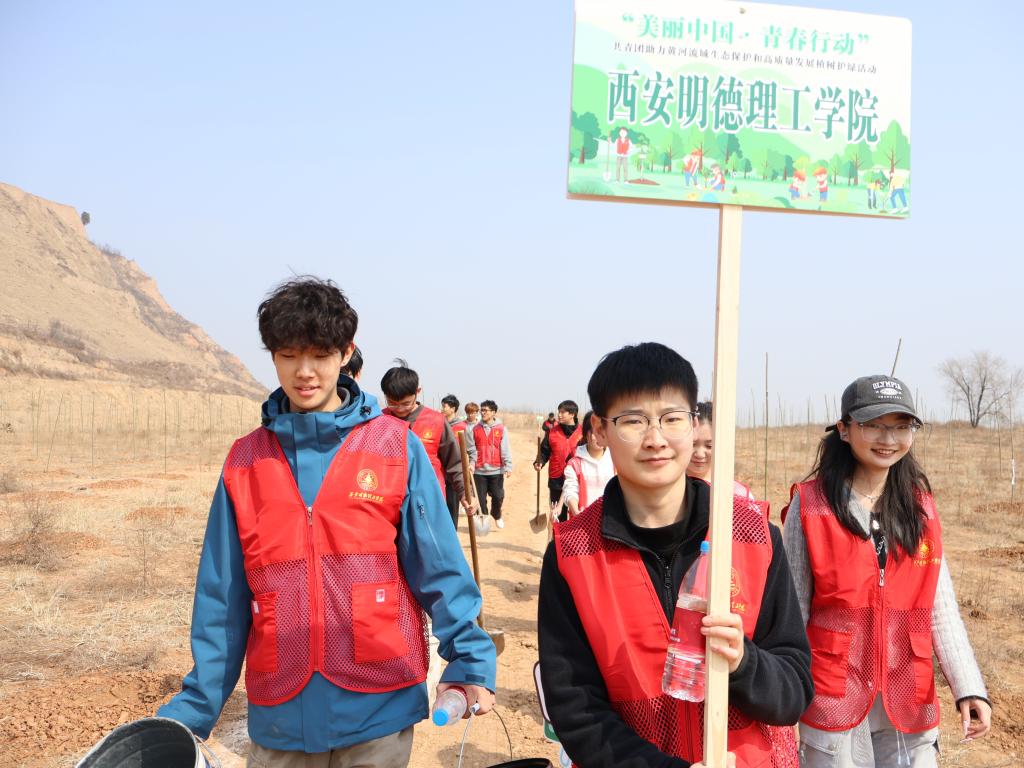 黄河流域生态保护和高质量发展是重大国家战略。本次活动以“保护母亲河”为主题,旨在通过沿黄九省区共青团的联动,凝聚青年力量,推动黄河流域生态修复与绿色发展。作为活动的重要环节,植树护绿行动选址在韩城市黄河沿岸生态脆弱区,计划栽种数千株耐旱抗风树种,构建生态防护林带,助力水土保持和生物多样性恢复。学校志愿者主动投身这一实践,展现了新时代青年投身国家战略的使命担当。