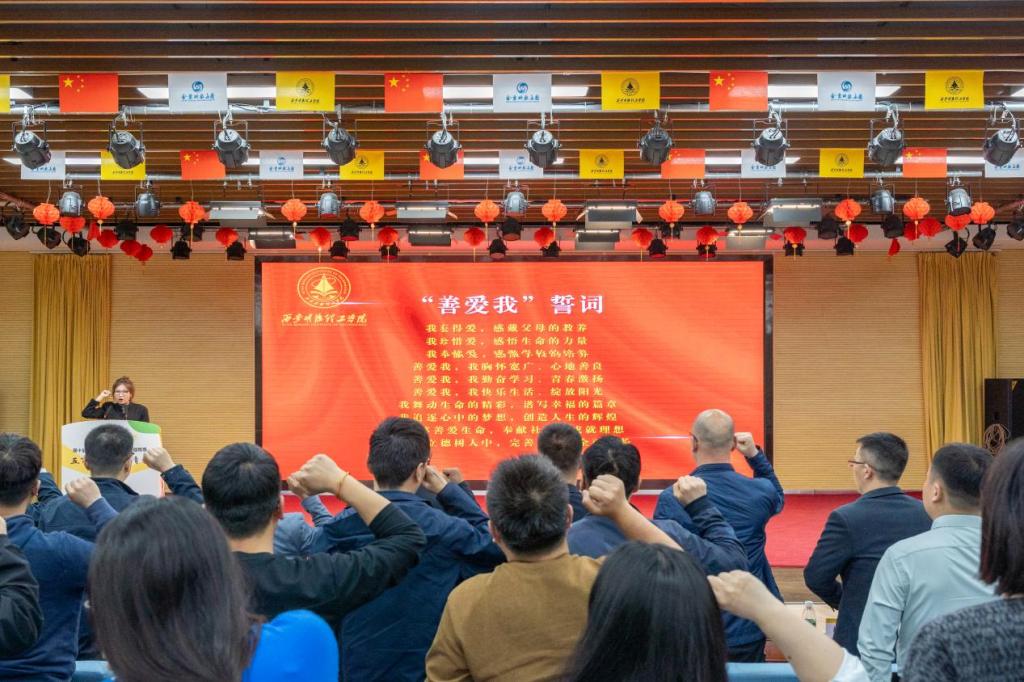 大学生心理健康教育中心专职心理咨询师强诺涵老师领誓“善爱我”誓词。