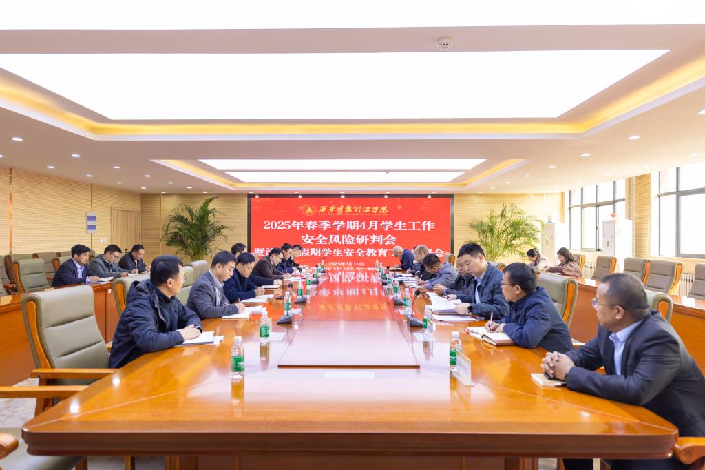 为进一步筑牢校园安全防线、科学研判风险隐患,统筹做好学生安全教育与管理工作,确保清明节假期及后续学期工作平稳有序推进,3月31日,学校在明志楼南518会议室召开2025年春季学期4月学生工作安全风险研判会暨清明节假期学生安全教育工作部署会。学校党委副书记、副校长刘星,副校长陈鹏,学校办公室、党委组织宣传部、党委学生工作部、网络信息化中心、后勤管理处、智慧安全警务处、及各学院党委(党总支)书记、副书记参加会议。会议由党委学生工作部副部长童杨梓主持。