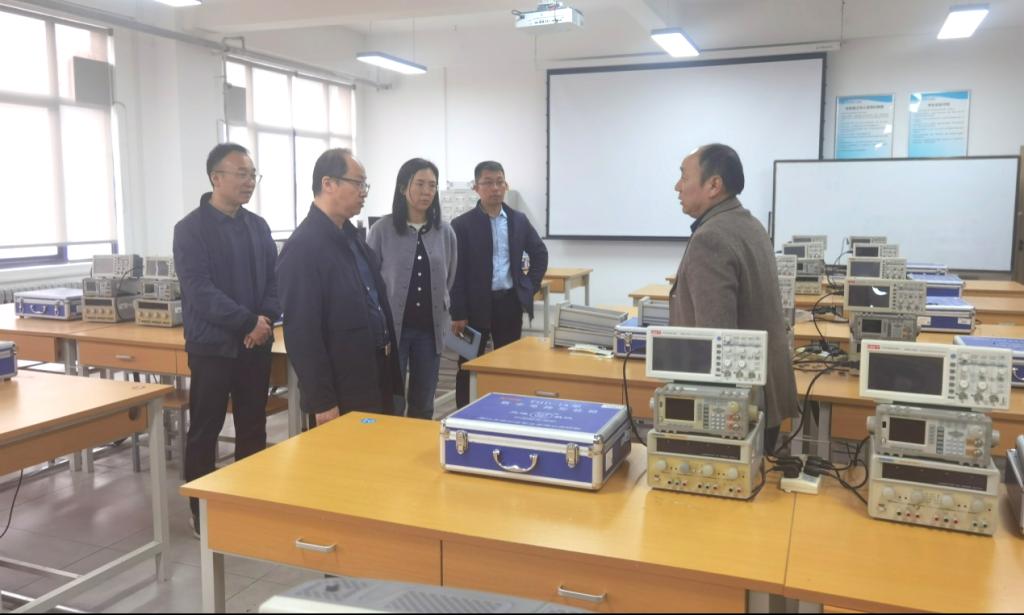 林东副校长一行先后走访了数字电子技术实验室、大数据实验室、通信原理实验室、电子工艺装配实验室等十余个实验场所,详细调研了实验室建设情况,随机调阅实验室工作日志,仔细检查物品存储、消防设施运维及设备操作规范。