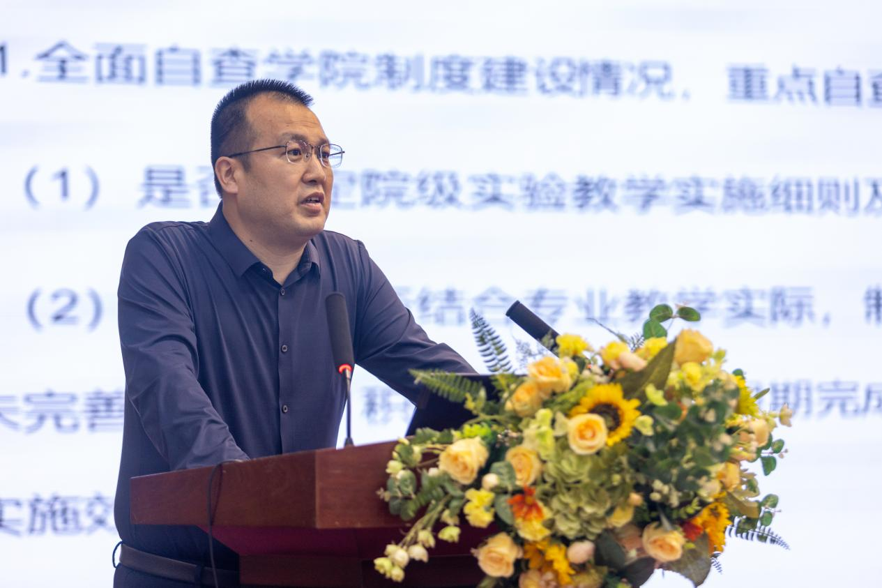 教务处副处长任华对期中教学检查实验实习实训教学、毕业设计(论文)、教学反馈与评价及期中教学检查安排等重点工作作出详细部署。他提出,一是要聚焦实验实习实训教学、实验室建设、虚拟仿真实验教学等关键环节,锚定应用型人才培养目标,严格执行“三个百分百”工作要求:制度规范百分百上墙、实验项目百分百开出、安全管控百分百覆盖。重点强化实验室效能建设,建立“建管用评”闭环机制,对低效能实验室实施“通知督办-限期整改-动态调整”的治理路径,切实避免资源闲置现象。二是要建立健全毕业设计(论文)“学校统筹-学院主责-专业落实-教师严控”四级质量责任体系,严格把控选题、开题、中期、答辩等关键节点,做到严格过程管理、严把质量关口、严肃整改问责,压实各级主体责任,构建选题科学化、过程精细化、答辩规范化的全流程管理体系;三是要切实做好教学质量评价工作,严格按照时间节点高质量完成领导听课、同行评价、学生评教等关键环节,确保评价数据真实有效;四是要将检查发现的重点难点问题转化为改进工作的动力,通过师生座谈会、专题研讨会等形式深入剖析问题根源,制定针对性整改方案。注重经验总结与成果转化,提炼形成可复制推广的质量提升经验,促进教育教学管理质量提升。五是要高度重视学校期中教学检查工作,院领导班子要落实“一把手”负责制,亲自部署、全程督导,做到方案制定科学化、问题整改清单化、总结报送规范化。通过建立工作台账、实施销号管理、开展专项督查等措施,确保检查工作不走形式、不折不扣落到实处,为学校建设高水平应用型人才培养提供有力支撑。