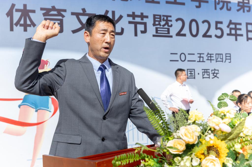 校党委书记马川鑫宣布学校第二十一届体育文化节暨2025年田径运动会开幕。