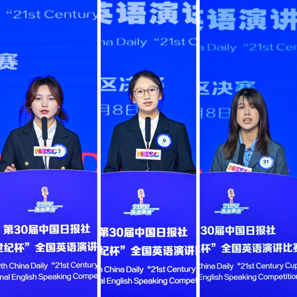 “21世纪杯”全国大学生英语演讲比赛由中国日报社创办于1996年,2023年被纳入《全国普通高校大学生竞赛分析报告》的竞赛目录,是我国官方认可的全国性赛事之一,也是国际公众演讲比赛(IPSC)中国区唯一选拔平台。30年来,该赛事获奖选手中涌现出了李克强总理的口译员孙宁、央视英文频道知名主持人刘欣等大批国家外语人才。本届大赛启动以来,在有关领导和单位支持下,世界杯官网语言文化与传播学院英语演讲教学团队及其指导的MAPS明德英语公众演说协会精心筹办校园选拔赛。全校各年级、各专业近100余名选手报名参赛,胡烨、王蕊和刘思羽3名同学历经校园初赛、复赛的层层选拔,从中脱颖而出,为学校争得了荣誉。