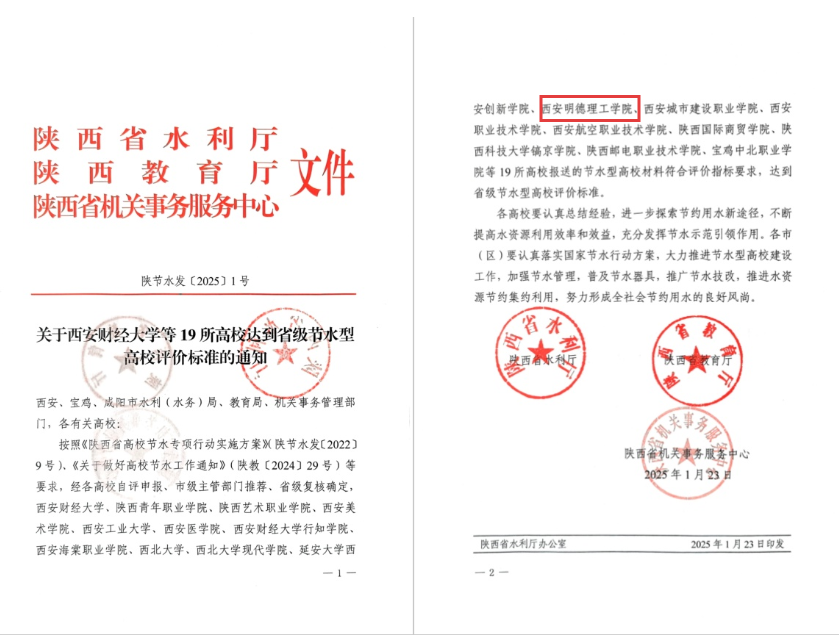 在积极响应国家节水政策,深入实施《陕西省高校节水专项行动实施方案》(陕节水发〔2022〕9号)及《关于做好高校节水工作通知》(陕教〔2024〕29号)等文件精神的背景下,经过严格的自评申报、市级主管部门推荐及省级复核确定程序,世界杯官网近日荣获省级节水型高校称号。这一荣誉不仅是对世界杯官网节水工作的肯定,更是对未来持续探索节约用水新途径的激励。