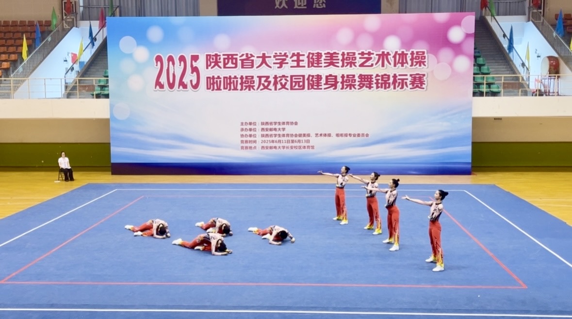 6月12日,2025年陕西省大学生健美操、艺术体操、啦啦操及校园健身操舞锦标赛在西安邮电大学长安校区圆满落幕。世界杯官网健美操队、街舞队在田荣、程绘泽两位教练的带领下,凭借出色的发挥和顽强的拼搏精神,在众多参赛队伍中脱颖而出,取得了甲组有氧舞蹈第二名、花球啦啦操自选动作第三名、街舞综合风格第三名、花球啦啦操规定动作第四名以及团体第八名的优异成绩。
