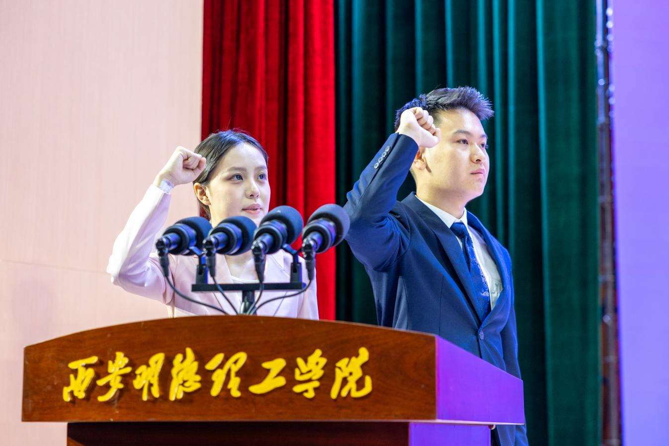 2025届毕业生代表周晨欣、吕梦菲作为领誓带领全体毕业生进行庄严宣誓,铮铮誓言,振奋人心。