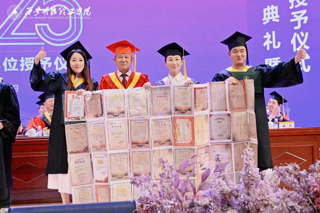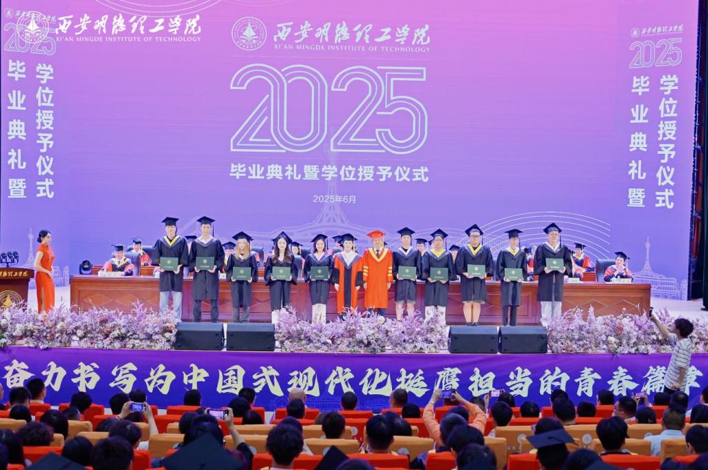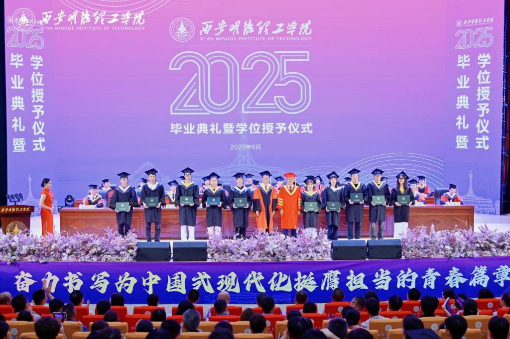 学校校长王志刚作了主题为“以青春之我,做时代先锋”的致辞,深情回顾了2025届毕业生求学期间党和国家事业发展辉煌历程、学校高质量转型发展成果,以及学生在校学习、生活和取得成绩,殷切寄语同学们“心系家国,做复兴征程的答卷者;勤奋好学,做终身求知的深耕者;笃行实干,做人生梦想的践行者;赓续薪火,做明德文化的传承者”,并赋诗赠别:“秦岭巍巍沣水岸,五千学子正华年。万紫千红齐竞艳,今朝桃李香满园。放眼四海天地宽,止于至善勇登攀。青春做伴鸿图展,长安从此捷报传。”勉励全体毕业生响应新时代召唤,以“强国有我”的使命担当,在中国式现代化的壮阔征程中书写无愧于时代、无愧于人民、无愧于青春的精彩华章。
