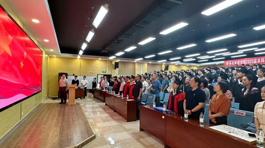 6月24日上午,经济与管理学院在建德楼201报告厅举行2025届本科毕业生学位授予仪式。学校副校长陈鹏、经济与管理学院党委书记兼行政副院长何文举、副院长许萍、副书记冯纪潮、学院学位委员会主席毛加强教授、学术委员会主席桑晓靖教授及各专业负责人、教师代表、家长代表、2025届毕业班辅导员和毕业生共同见证了这一重要时刻。学位授予仪式由冯纪潮主持。