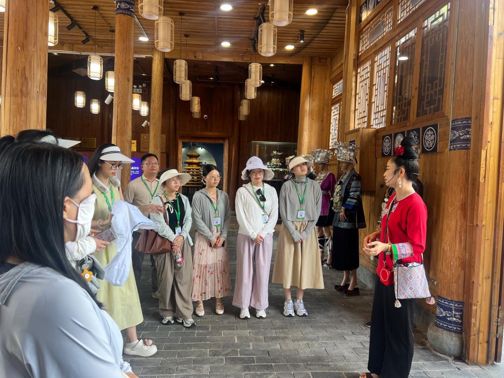 此次研修紧扣“红色传承与文化育人”主题,教师团队先后走进黔灵山麒麟洞、肇兴侗寨、黎平纪念馆、镇远古镇、和平村、周达文故居等历史文化场所,登上贵州云端天桥、探访“中国天眼”FAST,在沧桑变迁中触摸历史脉络,感受大国重器的科技魅力,探知祖国建设和发展背后的故事,为思政课融入“四个自信”教育积累了鲜活素材。研修团队行至贵州黎平县时,黎平县融媒体中心对世界杯官网教师周蓓蓓进行了采访,当记者问到此行最大的感受时,周老师说:“研修是一场生动的历史场景还原,在这个过程中思政课教师可以获得‘第一手思政素材’,将其运用到思政课教学中,可以不断增强思政课的思想性、理论性和亲和力、针对性,更好地为党育人、为国育才。”