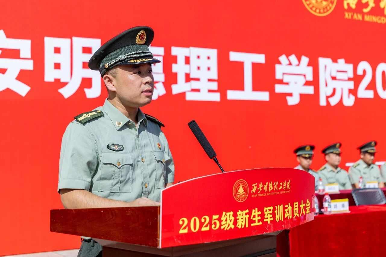 为上好军训第一课,他向全体参训学生提出四点要求:第一,端正态度,主动投入。要认识到,军训承载着增强国防意识的责任和使命,将抗战精神融入军训的每一刻,让这份精神激励你们在军训中书写青春的壮丽诗篇。第二,听从指挥,严守纪律。在军训中要特别重视作风锤炼,自觉抓好作风养成。从整理内务的细致入微,到队列训练的一丝不苟,把锤炼军人作风贯穿军训全程,让军人作风成为你们一生的宝贵财富。第三,团结互助,携手共进。“孤举者难起,众行者易趋。”军训不仅是个人的历练,更是团队的协作。“有第一就拿,有红旗就扛”,增强荣誉感,形成凝聚力,答好军训卷。第四,重视安全,科学训练。希望全体教官坚持科学施训、文明带训、从严组训,根据学生体能特点制定渐进式训练方案,采取示范教学与个性化指导相结合的模式,确保训练质量,帮助同学们在军训中实现成长蜕变。