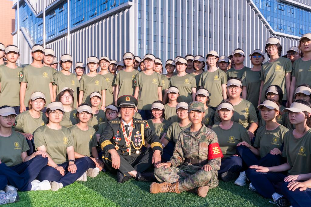 “银发宣讲团”以“五老”群体为核心,由翟学荣、牛先民、马玉革、马权斌、汪勇等多位英雄模范组成,他们兼具丰富人生阅历与深厚爱国情怀。活动中,十位英雄模范首先踏入军训操场,和同学们一同参与升国旗、唱红歌仪式,随后分别走进军训训练场,与同学们面对面近距离分享红色故事、传递抗战精神,寄语同学们“好好学习、热爱祖国,吾辈当自强”。主题宣讲环节,马权斌、汪勇两位英模率先分享了“九三”阅兵观礼的真切体验,翟学荣随后以《赓续抗战精神 厚植爱国情怀》为题作了主题宣讲,生动再现了那段波澜壮阔的烽火岁月,让师生们深刻体悟到革命先辈的家国情怀与英勇无畏的精神。