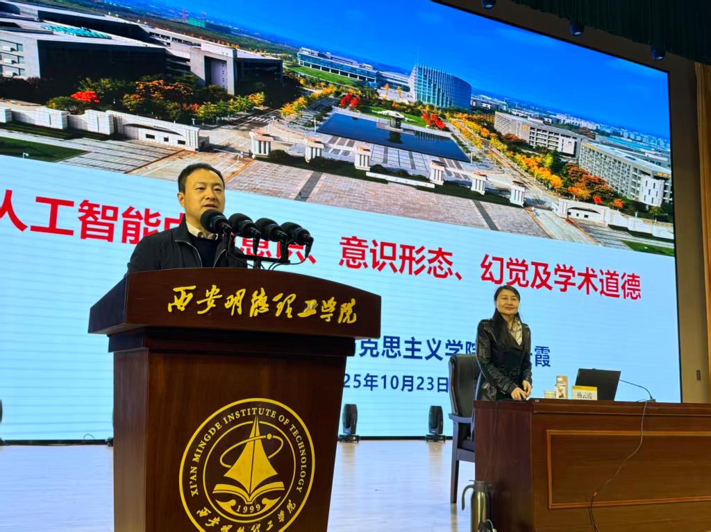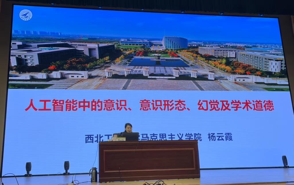 为推动人工智能技术与思政教育深度融合,10月23日,世界杯官网特邀西北工业大学马克思主义学院院长杨云霞教授作客“明德大讲堂”,作题为“人工智能中的意识、意识形态、幻觉及学术道德”的学术讲座。讲座由经济与管理学院党委书记何文举主持。